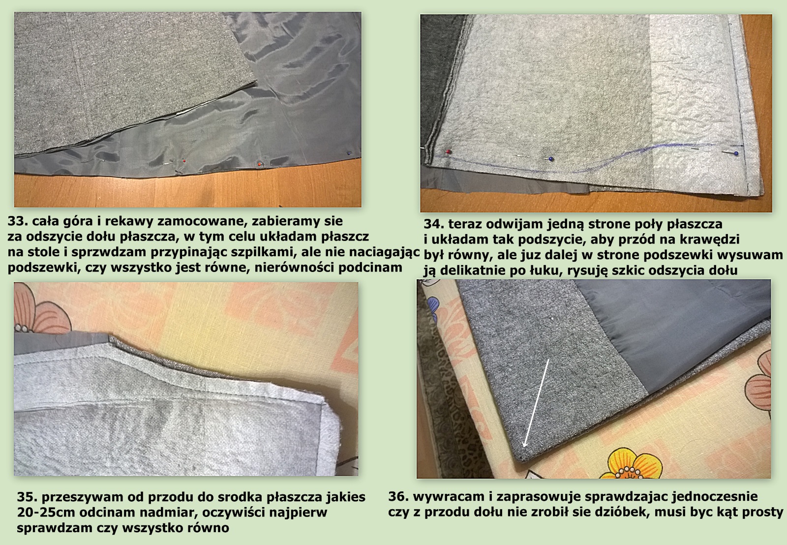 Niestety, wszystko to było dla mnie bardzo niejasne. Może i jestem laikiem, ale tak czy owak czułam się jak na tureckim kazaniu. Innymi słowy, mów do mnie jeszcze:) Zaznaczam, że mam tylko za zadanie skrócić płaszcz i dopasować i podszyć podszewkę. Cóż, nie będzie łatwo…
