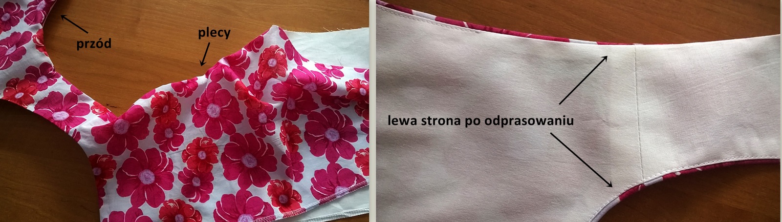 Zszywam ramiona na części z tkaniny i częściach podszewki, rozprasowuje.