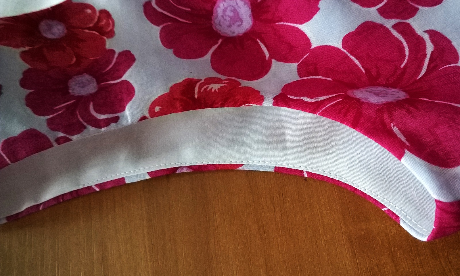 Lubię go za to, że podszewka przy dekolcie, jest ładnie wystębnowana dookoła co trzyma ją w ryzach i nie pozwala się gdzieś brzydko wychylać. Niektóre sukienki pozwalają nam na odszycie podszewką i odszyciami z tej samej tkaniny przyszytej do podszewki, ale nie zawsze jest to możliwe gdyż widać je po prawej stronie sukienki.