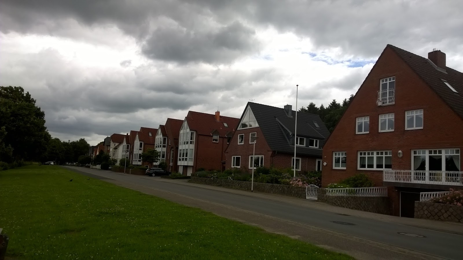 Rejon, w którym miałam przyjemność przebywać, zaskoczył mnie totalnie swoją aurą. Ubzdurałam sobie, że tamtejszy klimat jest taki jak u nas, a tu zaskoczenie. Pogoda, w tym rejonie, (północno-zachodni kraniec Niemiec) to istny kalejdoskop pogodowy. W ciągu dnia pogoda potrafi zmienić się kilkanaście razy. A deszczowe dni to raczej norma, zwłaszcza w miesiącach letnich. Takie niebo to chleb powszedni.