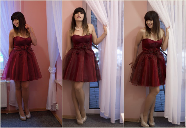 2. Sukienka z bordowej organtyny, gorset + obszerny dół