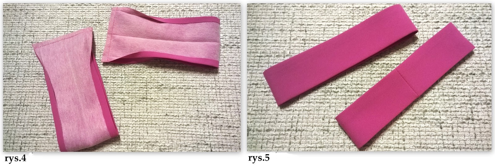 rys.4 rozkładam paski, odmierzam potrzebną długość i przeszywam