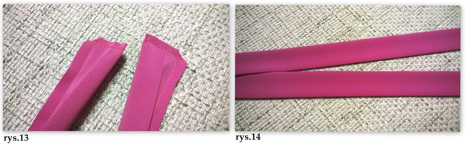 rys.13 mocujemy brzegi naszych pasków, przeszywając w poprzek, obcinamy nadmiar