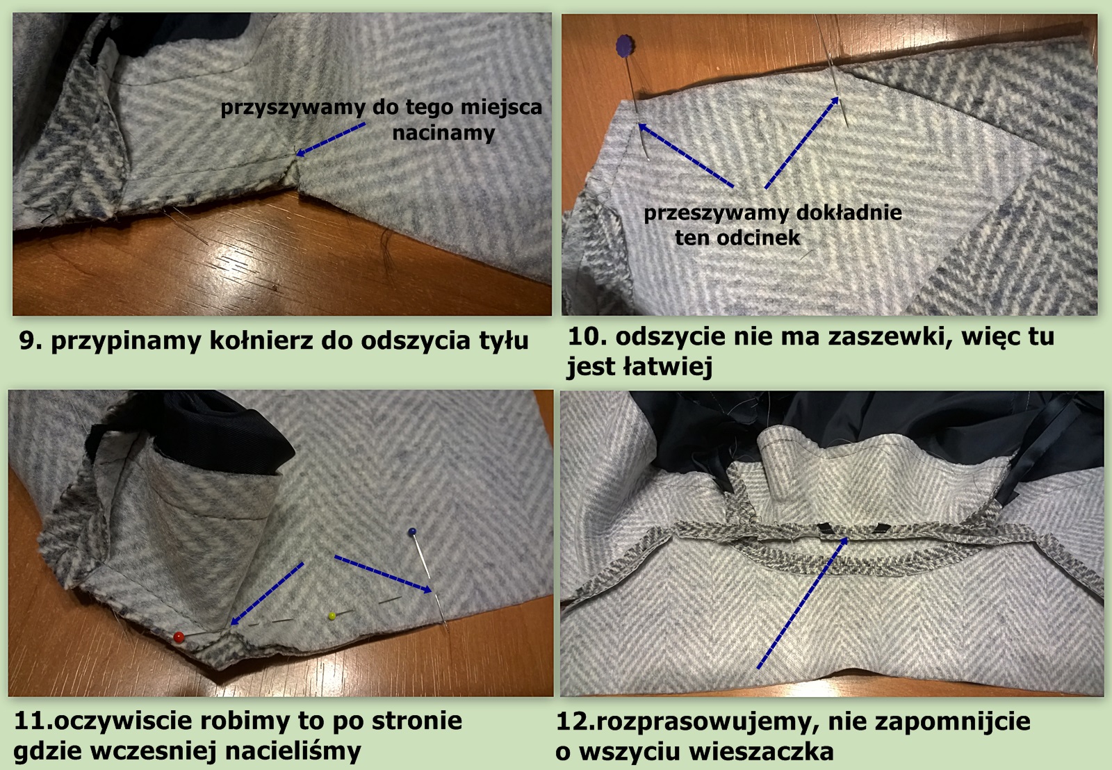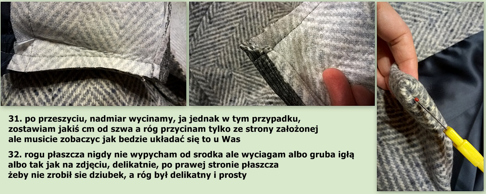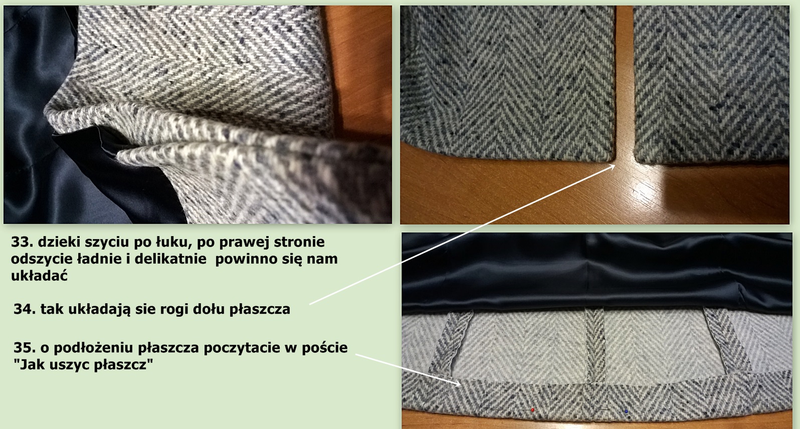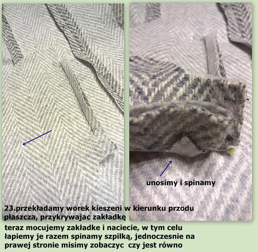 Pokażę tylko elementy o których wspomniałam wcześniej, jak uszyć płaszcz pisałam TU