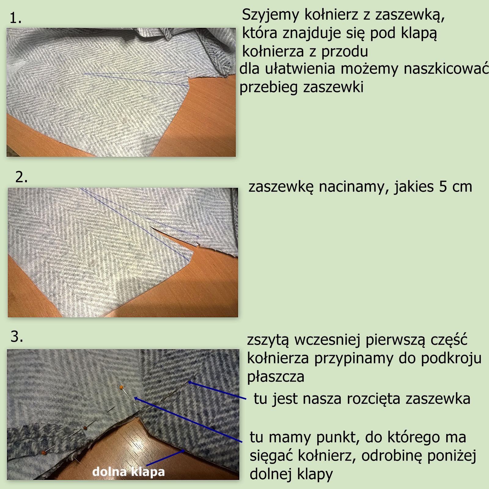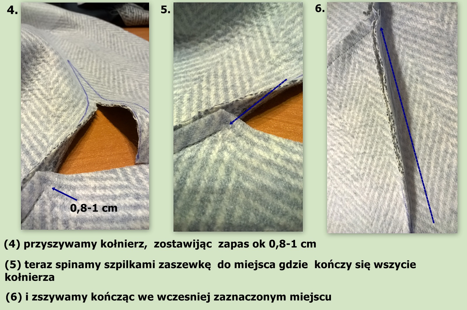 3. jak uszyć kołnierz z zaszewką, która jest pod nim na pierwszy sposób