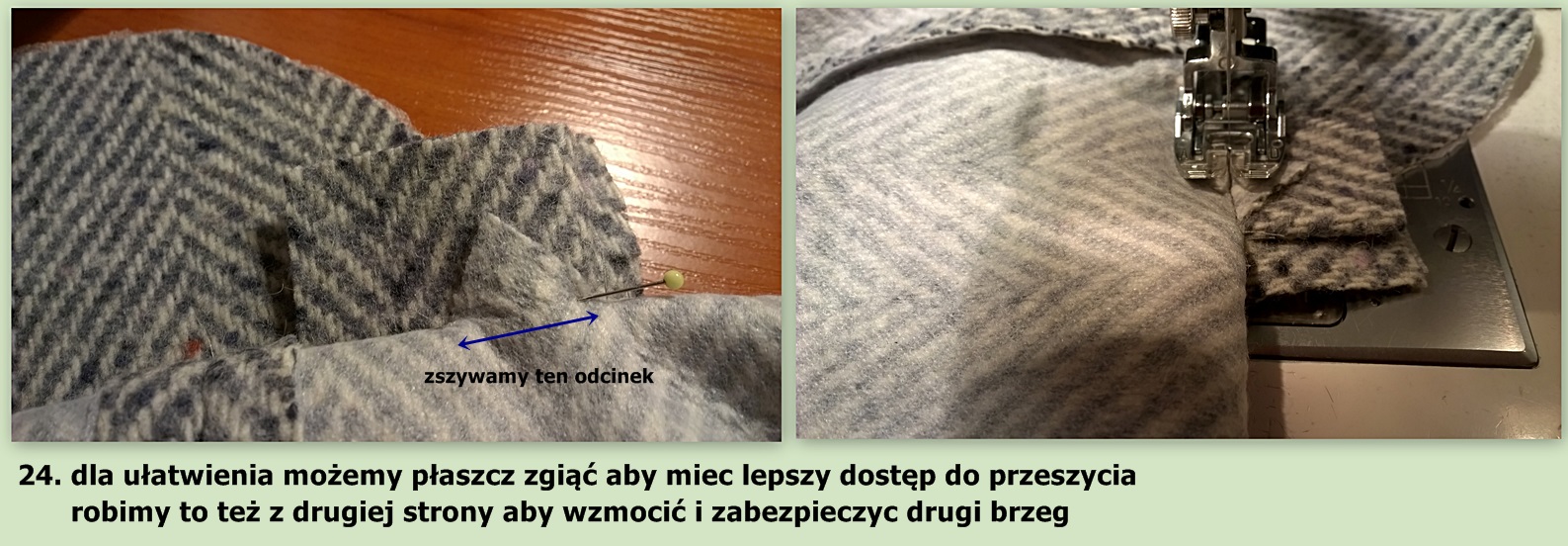 Tym razem, nie robię stębnowania na cm od brzegu płaszcza, ale chce by płaszcz, był nie widocznie odszyty